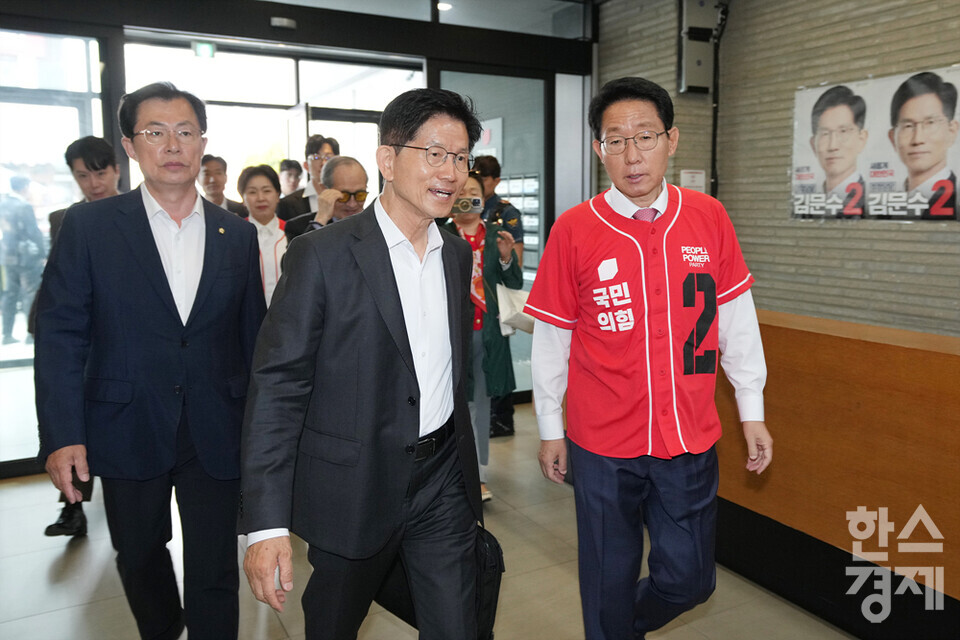 김문수 국민의힘 대선 후보가 27일 오전 서울 여의도 중앙당사에서 열리는 국토 발전 관련 기자회견(국토판갈이 "방방곡곡 핫플KOREA" 공약발표 및 국민께 드리는 약속)을 위해 로비로 들어서고 있다. /최대성 기자 dpdaesung@sporbiz.co.kr 2025.05.27.