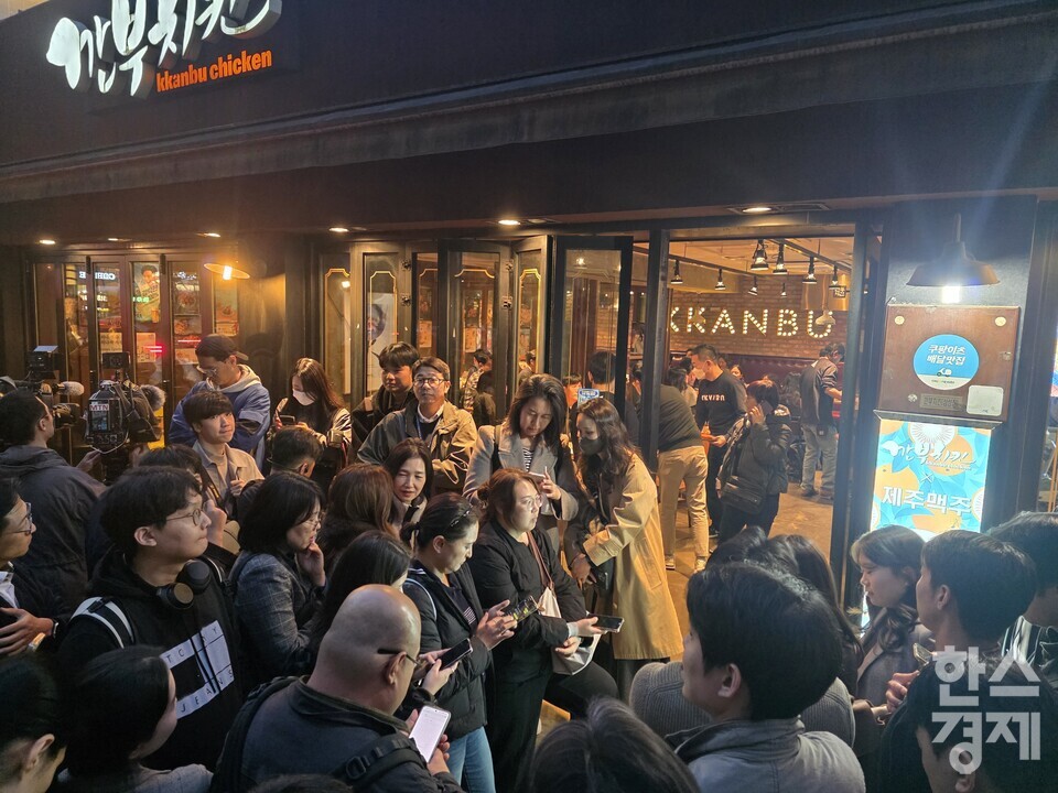 젠슨 황 엔비디아 CEO가 30일 오후 서울 강남구 한 치킨집에서 이재용 삼성전자 회장과 정의선 현대차그룹 회장과 함께 '치맥’(치킨+맥주) 회동을 가질 가운데 옆 테이블에는 일반 손님들로 가득 차 있다. / 김근현 기자 khkim@sporbiz.co.kr 2025.10. 30.