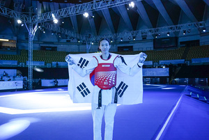 | 한스경제=신희재 기자 | 한국 태권도가 '2025 방콕 월드태권도 그랑프리 챌린지' 첫날 남녀 두 체급에서 금메달을 휩쓸었다.한국은 21일 태국 방콕 인도어 스타디움 후아막에서 열린 대회 첫날 남자 68kg 이하급 문진호(18·서울체고), 여자 49kg 이하급 이예지(24·인천동구청)가 나란히 정상에 올랐다. 장준도 68kg 이하급 결승에 올라 은메달을 획득했다.올림픽랭킹 79위인 문진호는 결승에서 올해 이 체급 강자로 떠오른 장준을 2-0(8-7 5-4)으로 잡는 이변을 연출했다. 그는 우승 직후 "장준 형은 어릴 때부터 내게