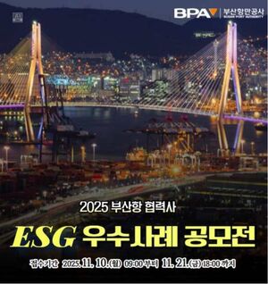 | 한스경제=임준혁 기자 | 부산항만공사(BPA)는 부산항의 지속가능한 발전과 ESG 경영 확산을 위한 ‘2025 부산항 협력사 ESG 우수사례 공모전’을 10일부터 개최한다고 밝혔다.이번 공모전은 협력사의 자율적인 ESG 실천 노력을 장려하고 민간 부문의 우수사례를 발굴·포상함으로써 항만산업 전반에 지속가능경영 문화를 확산하기 위해 마련됐다.공모 대상은 BPA와 협력 관계에 있는 협력사이며 공모 분야는 ESG(종합)와 환경(E), 사회(S), 지배구조(G) 등 네 가지다. 응모 기업의 ESG 경영 체계 구축을 포함한 E, S, G