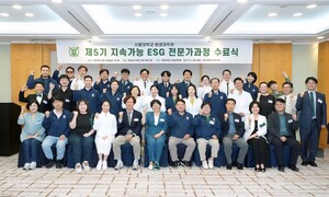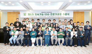 [한스경제=신연수 기자] 서울대학교 환경대학원이 주관하고 한스경제·ESG행복경제연구소가 홍보·협력하는 ‘제5기 지속가능 ESG 전문가과정’ 수료식이 20일 서울대학교 호암교수회관에서 개최됐다.이날 수료식에는 5기 과정 26명의 펠로우를 비롯해 윤순진 서울대 환경대학원장, 조경진 5기 주임교수 등 서울대 교수진과 정순표 한국뉴미디어그룹 회장, 송진현 한스경제 대표 발행인, 이치한 ESG행복경제연구소장 등 30여 명이 함께했다.서울대 환경대학원 제5기 지속가능 ESG 전문가과정은 지난 3월 출범식을 시작으로 6월 13일까지 14주간 지