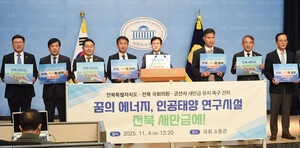 | 한스경제=이호형 기자 | 전북특별자치도 ·전북지역 국회의원,군산시가 핵융합 연구시설의 최적지가 전북 새만금이라며 핵융합 연구시설의 새만금 유치를 촉구했다. 4일 서울 여의도 국회 소통관에서 김관영 전북도지사 및 더불어민주당 전북지역 국회의원들은 기자회견을 갖고 "핵융합 연구시설의 최적지가 전국 새만금"이라며 "정부와 한국핵융합에너지연구원이 새만금을 최종 입지로 선정해 줄 것을 건의한다"고 밝혔다.