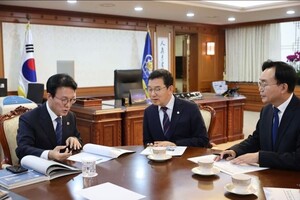 | 한스경제=정평국 기자 | 김영록 전남지사는 25일 서울 여의도에서 국비 10조원 시대를 열기 위해 국회 예산 증액 마지막 관문인 기획재정부 설득에 나섰다. 김 지사는 유병서 예산실장 등을 만나 현안사업을 설명하고 국회에서 반드시 반영되길 바란다고 요청했다.이번 면담은 국회 증액 마지막 단계인 시기에 김 지사가 직접 기재부 핵심 인사를 만나 전남의 미래가 걸린 핵심 사업을 반영하기 위한 전략으로 국비 10조원 시대 개막을 위한 결정적 승부처로 평가된다.김 지사는 "전남은 국가균형발전과 미래 전략산업의 중심축으로 도약할 준비가 된