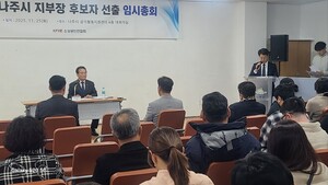 | 한스경제=주남현 기자 | 소상공인연합회 나주시지부(이하 나주지부) 지부장 선출을 위한 임시총회가 회원간 화합과 발전을 도모하기 보다는 반목과 갈등을 조장하는 총회로 전락했다는 비판이 일고 있다.나주지부는 25일 오후 3시 빛가람동 공익활동지원센터에서 제5기 지부장 선출을 위한 임시총회에, 김도완 후보를 비롯해 A, B 후보 등 3명이 나서, 김도완 후보가 최종 당선됐다.그러나 김 당선자는 지난해 7월 회장(나주지부장) 임명된 이후, 올해 2월 광주지방법원으로부터 회장 임명 무효 판결로 자격이 상실된 바 있다.이러한 이력에도 불구