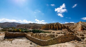 [한스경제] 저 멀리 디 마을이 아련하게 내려다보인다. 길가에 다 쓰러져 가는 불탑이 강한 모래바람 속에 홀로 서 있다. 외로워 보인다. 세상과 단절된 때 묻지 않은 원시의 자연생태계를 서너 시간째 혼자 걷는다. 무스탕의 깊고 텅 빈 계곡을 훑고 지나가는 바람 소리가 메마른 공허감으로 다가온다. 숨죽인 외로움에 짓눌려 터져 나오는 무스탕의 바람 소리는 절박한 비원(悲願)이 되어 전설로 남는다. 거칠게 휘몰아치는 바람에서 비릿한 태초의 날내와 삭막한 고독감이 묻어난다. 거친 흙바람이 한, 한숨, 아픔, 고통, 신성, 자비, 포용, 기