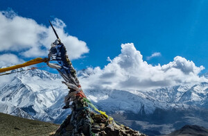 [한스경제] 타루쵸 밑에 결가부좌하고 앉아 우주와 호흡한다. 사막 같은 건조함과 황량한 아름다움에서 피어나는 고독감, 비장감 마저 드는 적막감이 내 영혼을 감싼다. 바람에 펄럭이는 룽다와 타루쵸의 깃발 소리와 마니퇴 돌 틈 사이를 스치고 지나가는 바람 소리가 삿된 마음에 얼룩졌던 내 마음을 씻어내는 것 같다. 나에게 무스탕 트레킹은 한 발 한 발 내딛는 육체의 발걸음을 넘어 마음을 정화하며 걷는 순례자의 고행길에 다름아니다. 자신을 들여다보며 깊숙이 숨어있던 자아를 만나보는 시간이기도 했다. 비신론자이지만 타루쵸의 펄럭이는 소리가