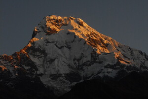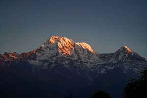 | 한스경제 | 새벽 추위에 부지런을 떨어 일출의 황홀경에 빠진다. 레스트 캠프도 손에 꼽히는 해돋이 명소다. 새벽 일출의 진홍빛 장관은 벅참이고 설렘이다. 그 잔상이 오래 아른거린다. 여명을 가르는 연분홍 아침 햇살에 마차푸차레가 오묘하면서도 은은한 색감을 발하며 신비로운 자태를 빛낸다. 안나푸르나 남봉 등 만년설의 히말라야를 감싸고 있는 구름바다에서 신들의 속삭임이 들리는 듯하다. 히말라야가 상서로운 여명의 마술에 걸린 듯 신비로운 자태로 신성을 발한다.오늘 아침도 롯지 방에서 누룽지를 끓여 김과 함께 먹는다. 식욕이 떨어진데다