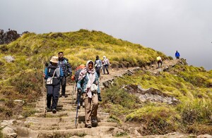 [한스경제] 홈스테이 집 주인 부부와 함께 단체 기념사진을 찍고 마르디히말을 향해 첫발을 내딛는다. 사람 좋은 집 주인 부부가 큰 길가까지 배웅을 나와 헤어짐을 아쉬워한다. 모퉁이를 돌아서며 뒤돌아보니 아직도 그 자리에 서서 손을 흔들고 있다. 마음이 따뜻해진다. 마을을 벗어나니 완만한 흙산의 등성이 마루금 위로 길이 길게 뻗어있다. 길옆으로는 분홍색의 메밀꽃이 흐드러지게 피어있고 키 큰 선인장도 가끔 눈에 띈다. 걷기 좋은 초가을 날씨에 계단식 논밭은 밀, 벼, 보리, 메밀 등으로 온통 초록색이다. 숙영지까지는 15km 안팎에 완