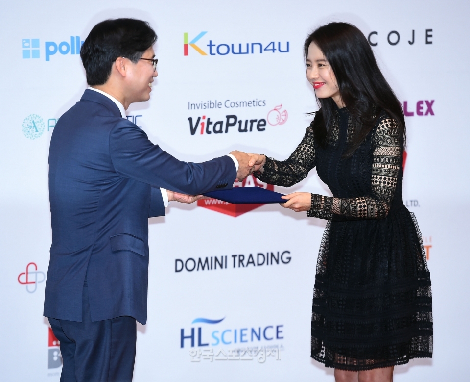 [한국스포츠경제 임민환] 배우 송지효가 17일 오후 서울 서초구 코트라(KOTRA)에서 열린 '2017 자카르타 한류박람회' 홍보대사 위촉식에 참석해 위촉패를 받고 있다.