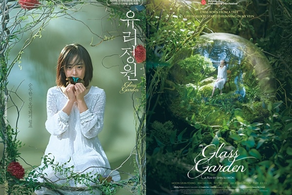 공개된 ‘유리정원’ 부산국제영화제 2종 포스터는 개막작 공식 포스터와 해외 마켓용 포스터로, 개막작 공식 포스터는 나비를 든 문근영의 순수한 모습과는 대비되는 가시덤불과 ‘순수한 건 오염되기 쉽죠’라는 카피 문구의 이질적인 조화가 묘한 매력을 전하며 호기심을 불러일으킨다. 녹음이 우거진 숲 속에 숨어있는 유리정원, 그리고 그 안에 앉아 있는 문근영의 이미지가 어우러진 해외 마켓용 포스터 또한 신비한 아름다움을 전한다.