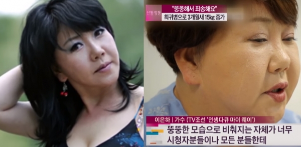 이에 이은하는 "쿠싱증후군을 앓고 있다"며 "3개월 동안 15kg이 증가했다"고 밝혔다.