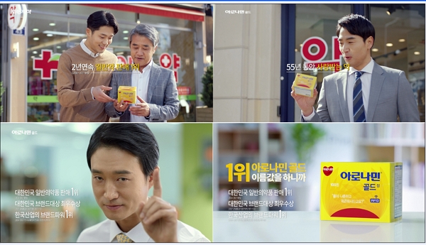 새로운 광고는 2016년에 이어 2년 연속 일반의약품 매출 1위에 오른 아로나민골드의 위상을 강조하고, 소비자들에게 꾸준히 사랑 받는 인지도 높은 제품이라는 점을 부각시키는 데 중점을 뒀다.