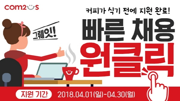 [한스경제 정영선] 컴투스는 오는 30일까지 경력직 대상 ‘원클릭’ 채용을 실시한다고 2일 밝혔다.