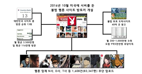 부산경찰청 사이버안전과는 23일 저작권법과 국민체육진흥법 위반 혐의로 국내 최대 웹툰 불법유통 사이트 ‘밤토끼’ 운영자 A 씨를 구속했다고 밝혔다.