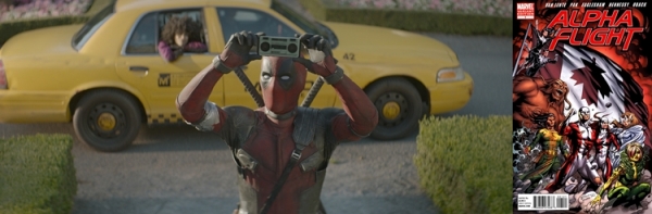 도핀더의 택시 위에는 ‘알파 플라이트(Alpha Flight)’라고 쓰여진 광고 배너가 있다. 언뜻 항공사를 떠올리게 하는 이 이름은 사실 원작 마블코믹스에서 캐나다를 거점으로 활동하는 히어로 팀명이다. 데드풀과 라이언 레놀즈가 모두 캐나다 출신인 것과 관련된 이스터에그로, 이외에도 캐나다 출신의 팝 가수 저스틴 비버나 캐나다에 대한 농담이 극중에 등장하기도 한다.