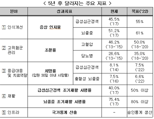 심뇌혈관질환 분야의 첫 법정 계획으로 급성심근경색·뇌졸중, 고혈압·당뇨병, 심부전 등 심뇌혈관질환을 예방-치료-관리한다는 전주기적인 관점에서 마련됐다.