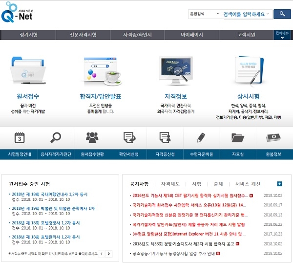 [한스경제=이성노 기자] 큐넷에서 각종 국가 자격시험 원서 접수를 받고 있다.