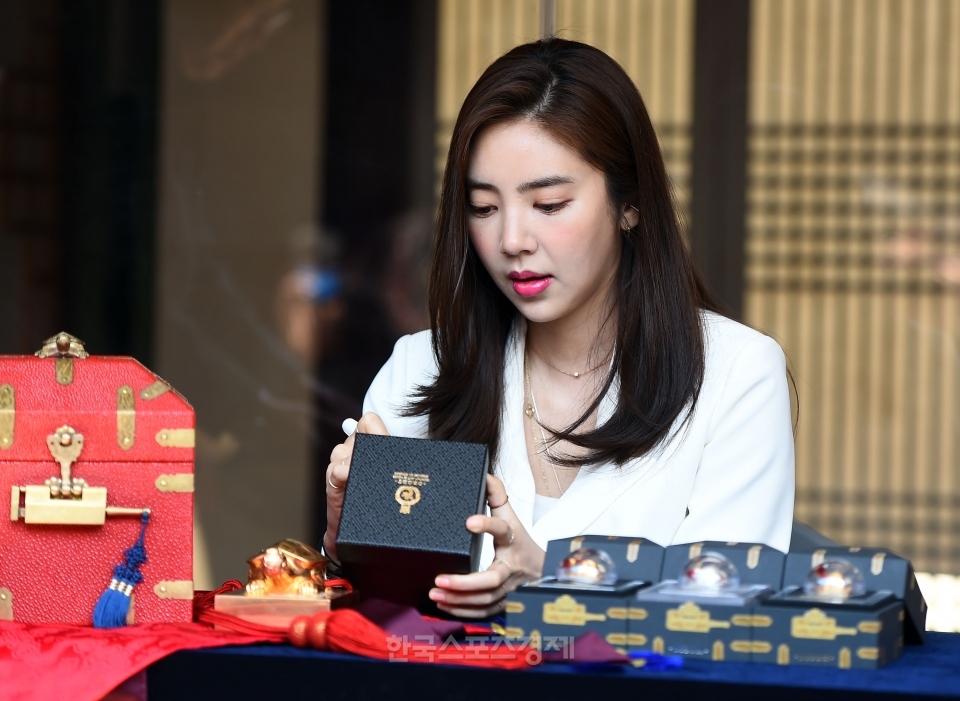 [한국스포츠경제=임민환 기자] 가수 겸 배우 손담비가 3일 오전 서울 종로구 와룡동 창경궁에서 열린 조선 어보 기념메달 시리즈 3차 '정조효손은인' 공개 행사에 참석해 기념메달 케이스에 사인하고 있다.