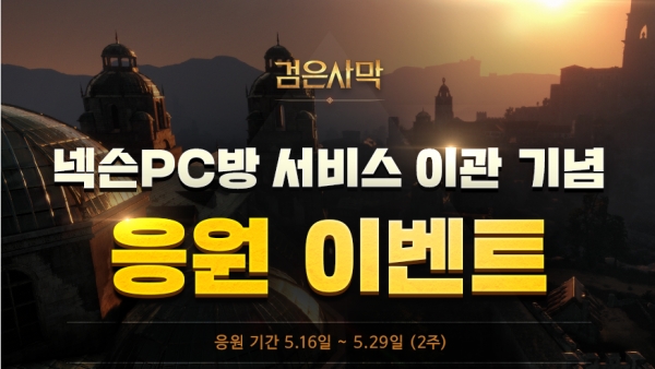 검은사막의 넥슨 PC방 서비스 이관을 기념해 다양한 PC방 이벤트도 제공될 예정이다. 넥슨 PC방 공식 홈페이지에서 '검은사막 응원하기' 버튼을 누른 가맹점주를 대상으로 누적 클릭 횟수에 따라 최대 4주간 검은사막 넥슨 PC방 서비스를 무료로 제공한다. 기본 무료는 일주일이며 응원 1000개를 추가 달성할 때마다 최대 4주까지 늘어난다.