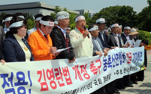 농협은 시행령 발표 직후 긴급성명을 통해 “김영란법이 농업인의 고통을 가중시킬 것”이라고 유감을 나타냈다. 농협에 따르면 명절기간에 판매되는 농축산물 선물세트 중 과일 50%, 인삼 70%, 한우 98% 이상이 5만원을 넘는 다. 농협은 대부분의 농민들이 여기에서 수익을 얻는데 김영란법이 시행되면 많은 농민들이 막대한 피해를 입을 것이라고 주장했다.