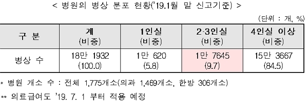 1775개의 병원·한방병원 입원실(2·3인실) 1만7645개 병상에 대해 건강보험이 적용된다.