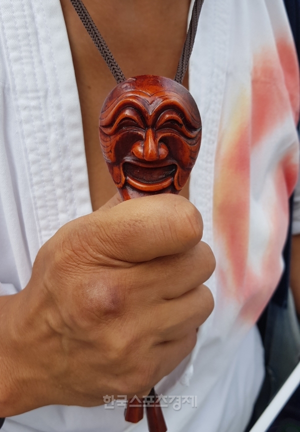그의 목에 걸려 있던 하회탈 목걸이는 그의 마음가짐을 대변했다. 그는 "항상 웃고 싶어서, 웃기 위해서 목에 걸었다"며 "한국 전통 물건이라는 점도 마음에 들었다"고 했다.