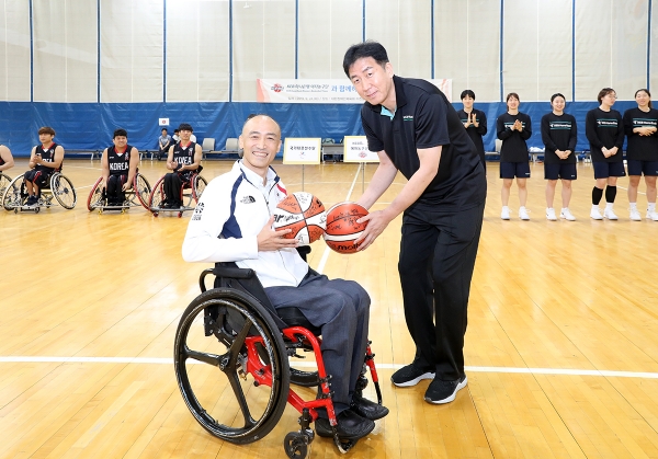경기도 이천 장애인 체육종합훈련원에서 개최된 이날 행사에는 이훈재 하나은행 여자농구단 감독 및 선수단, 정진완 대한장애인체육회 이천훈련원장과 장애인 농구 국가대표 선수단이 참석했다.