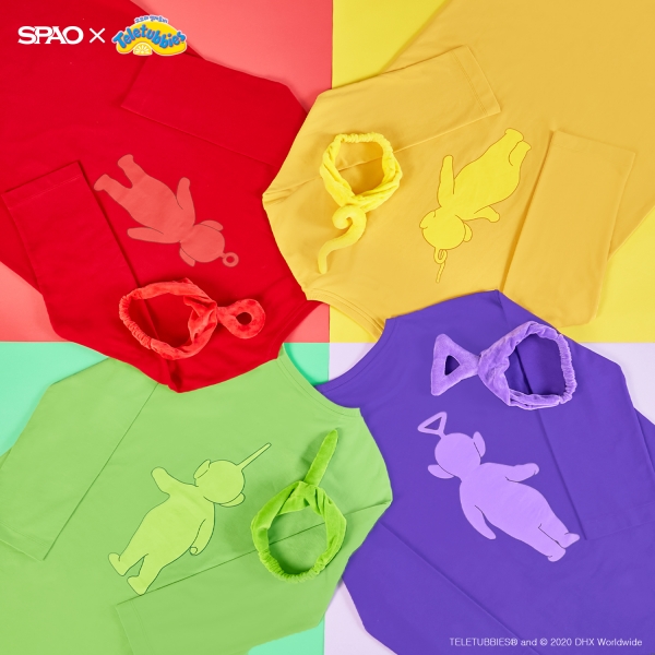 스파오가 준비한 ‘텔레토비 에디션’은 ‘텔레토비’ 주인공을 모티브로 한 의류 8종이다. 제품은 텔레토비 후드티, 룸슈즈, 양말, 스웨트셔츠 등으로 구성됐다.