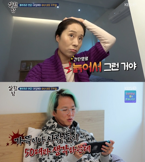 이날 팝핀현준은 아내 박애리에게 "가뜩이나 사람들이 50대인 줄 아는데 억울하지 않냐"고 핀잔을 줬다.