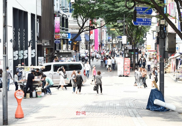 ▲ 지난달 20일 국내 첫 메르스 환자가 발생한 후 7일 현재 2만여명의 해외관광객이 방한을 취소했다. 그럼에도 정부는 7일에서야 뒤늦게 종합대책을 발표했다. 지난달 25일 명동은 관광객들로 붐볐지만(아래사진) 7일에는 메르스 여파로 한산하다(위쪽사진). 임민환기자 limm@sporbiz.co.kr