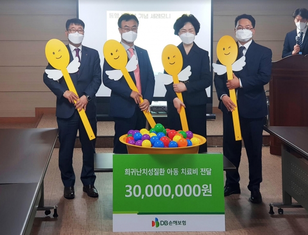 [한스경제=조성진 기자] DB손해보험이 한국희귀난치성질환연합회에 희귀난치성질환을 앓고 있는 어린이들을 돕기 위한 치료비 3000만원을 전달했다.