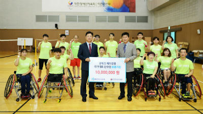 [한국스포츠경제 송진현] MG새마을금고중앙회(회장 신종백)는 7일 대한장애인체육회 이천훈련장을 방문해 장애인 배드민턴 국가대표 선수단에 용품 지원 전달식을 가졌다.