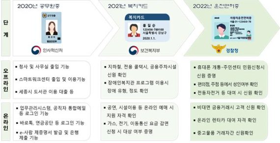 행안부는 올해 12월부터 모바일 공무원증을 도입해 안전성과 편의성을 검증한 후, 이듬해에는 장애인등록증, 내후년에는 운전면허증으로 모바일 신분증의 범위를 확대해 나갈 예정이다.