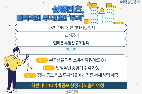 최근엔 다양한 기초자산(부동산)에 투자하는 공모상장 리츠들이 등장해 투자자들의 이목을 집중시키고 있다. 특히 코로나19로 인한 임대시장 침체와 초저금리, 연이은 부동산 규제정책 등에도 불구하고 상대적으로 안정적인 중장기 수익이 가능해 더욱 인기다.