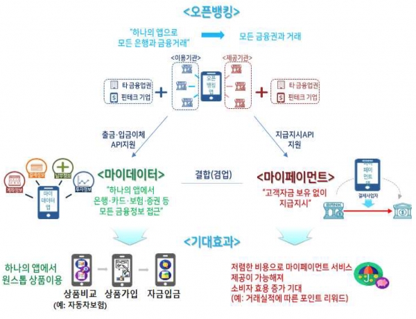 오픈뱅킹은 하나의 모바일 앱으로 여러 금융 계좌를 조회하고 결제·송금까지 처리할 수 있는 서비스로 현재까진 은행업권에서만 폐쇄적으로 관리되고 있다. 오픈뱅킹은 지난해 12월 출범 후 440만명이던 고객 수는 올해 9월말을 기준으로 중복 인원을 제외하고 2200만명으로 4배가량 급증할 정도로 빠른 성장세를 보이고 있다.