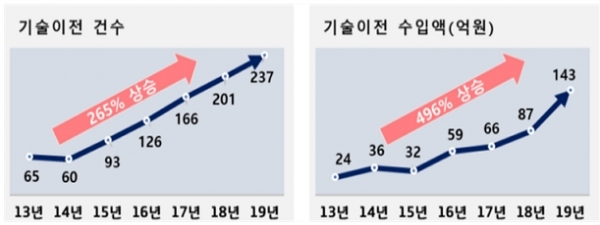 누적 기술이전 건수는 948건, 기술이전 수입액은 약 447억 원을 달성했다.