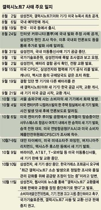 삼성전자가 국내외에서 발생한 발화 사고와 관련해 갤럭시노트7의 전 세계 판매와 교환을 잠정 중단하기로 11일 결정했다.