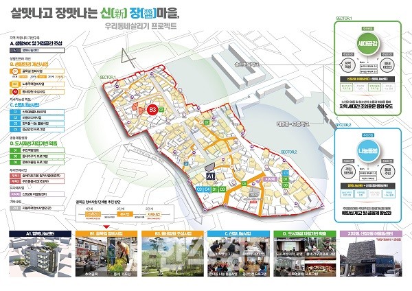 본 사업의 주요내용은 행복나눔센터를 건립하는 생활SOC 및 거점공간 조성, 골목길정비와 동네정원을 조성하는 생활환경개선사업, 신장나눔사업, 주민역량강화 등의 도시재생자립기반 확충 등 4개의 추진전략으로 진행될 예정이다.