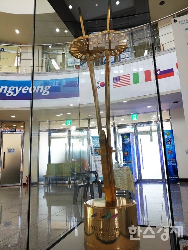[한스경제=박대웅 기자] 제14회 이순신장군배 국제요트대회(이하 이순신배)가 4일 각 체급별 계체를 시작으로 6일부터 8일까지 본격적인 레이스에 돌입했다. 올해 이순신배에는 한국, 미국, 러시아 등 10개국에서 모두 40척, 300여 명의 선수가 단 하나 뿐이 우승 트로피를 놓고 치열한 우승 경쟁을 펼쳤다. 중국 차이나컵, 태국 킹스컵과 함께 아시아 3대 요트대회이자 우리나라 최대 요트대회인 이순신컵의 상징 우승 트로피에 대해 알아봤다.