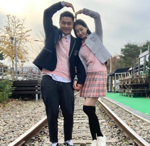 공개된 사진 속 정준은 김유지와 교복을 맞춰 입고 카메라를 응시하고 있다. 두 사람의 풋풋한 비주얼과 함께 손하트로 애정을 과시하며 부러움을 자아냈다.