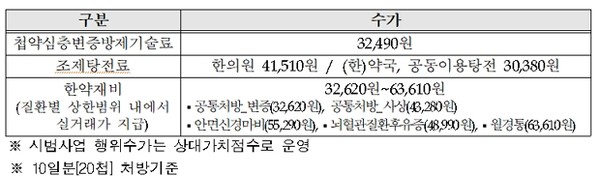 시범사업이 시행되면 예를 들어 이전에는 관행 수가에 따라 10일 기준으로 약 16만~38만원에 복용하던 첩약을 약 5만~7만원으로 복용할 수 있게 된다고 복지부는 설명했다.