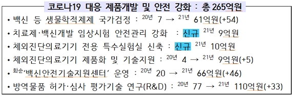 ◇코로나19 제품 개발·안전 관리 강화에 265억