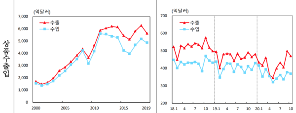 [한스경제=조성진 기자] 지난 10월 경상수지가 9월에 이어 100억 달러를 넘겼다. 이는 120억9000만 달러를 기록한 2016년6월 이후 역대 3위 규모의 흑자폭이다.