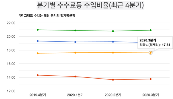 여신금융협회의 ‘수수료 등 수입비율’을 보면 3분기 평균 리볼빙 결제성 수수료는 17.61%로 집계됐다.