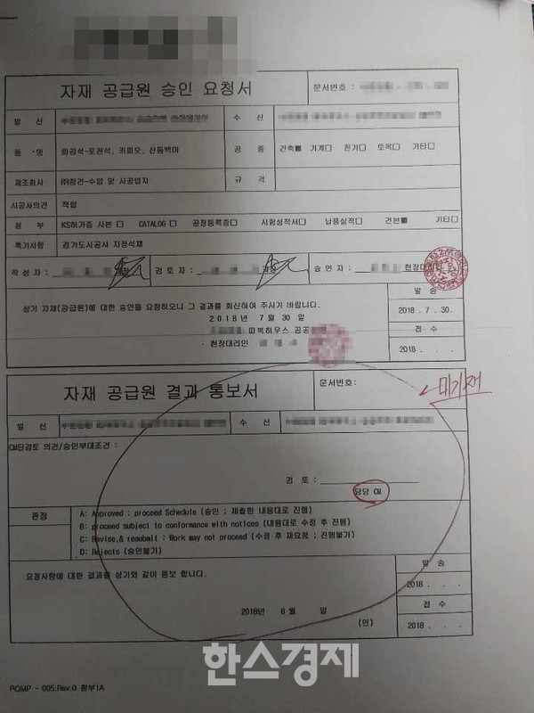 또 이 의원은 GH측으로부터 제출된 석재시험검사보고서도 국내 시험성적서가 아닌 중국에서 작성된 것으로 보여지며, 이는 국내 기준과 맞지 않는 점도 지적했다.