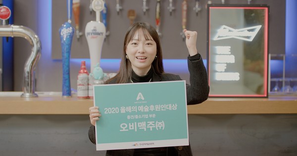 23일 오비맥주에 따르면 한국문화예술위원회가시상하는 ‘2020 올해의 예술후원인대상’ 수상 기업으로 선정됐다. '올해의 예술후원인대상'은 국내 문화예술 후원에 크게 기여한 기업과 개인에게 수여하는 상이다. 8회를 맞이한 ‘올해의 예술후원인대상’은 전문심사를 거쳐 총 7개 부문에서 6개의 기업과 방탄소년단 리더 RM과 가수 헨리 등 4명의 개인을 선정, 12월 21일 수상자를 발표했다.