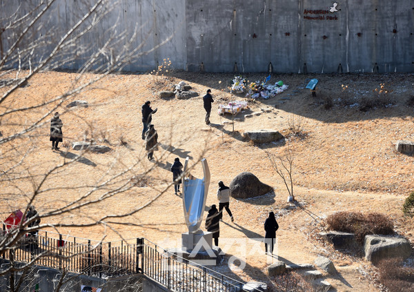 [한스경제=임민환 기자] 6일 경기도 양평 하이패밀리 안데르센 공원묘지를 찾은 추모객들이 양부모에게 장기간 학대 당해 숨진 정인(가명 )양을 추모하고 있다.