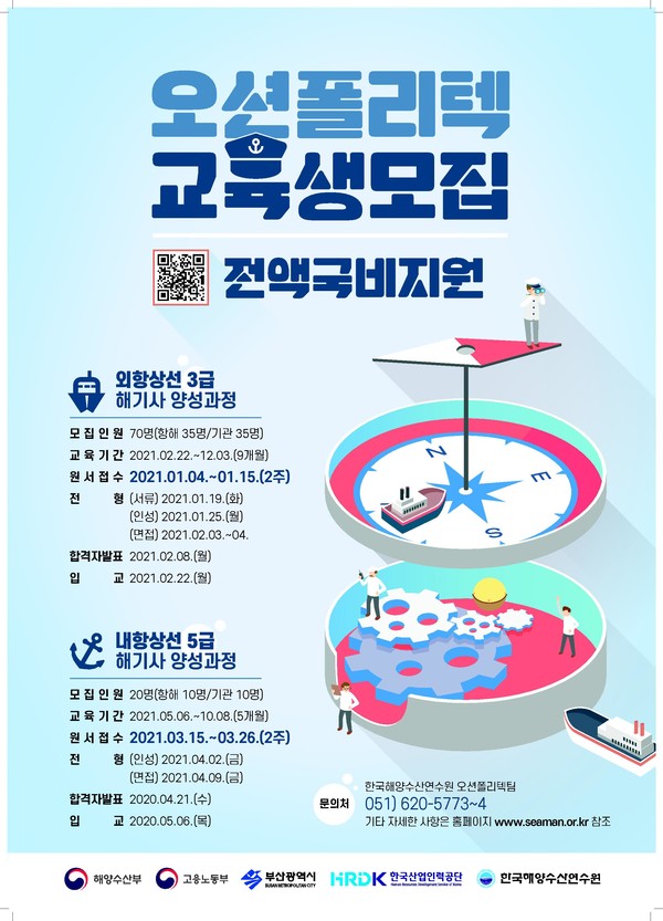 [한스경제=변진성 기자] 한국해양수산연수원이 올해 오션폴리텍 해기사 양성과정 교육생을 모집한다.