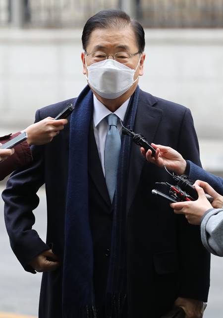 문재인 대통령은 지난 20일 강경화 외교부 장관의 후임으로 정 후보자를 내정했다. 정 후보자는 문재인 정부 초창기부터 지난해 7월까지 국가안보실장으로 재직하며 남북정상회담과 북미정상회담 등을 조율했다.