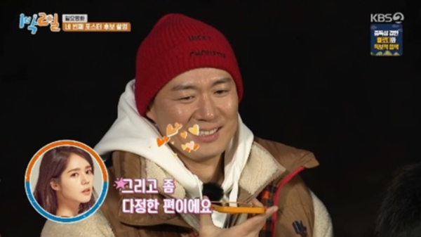 이어 문세윤은 “’1박2일’ 안에서 남편은 몇 점이냐”고 물었다. 한가인은 “90점”이라고 답해 놀라움을 안겼다. 이어 한가인은 “기대가 없지 않느냐”고 돌직구를 주변을 폭소케 했다.